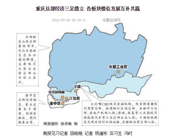 “总部企业区域布局已全面展开:江北嘴CBD吸引金融机构,80%以上市级金融机构已签约入驻,长江上游金融核心正在形成;观音桥商圈吸引商贸总部、城商银行区域总部、金融中介总部、房地产机构入驻;港城、鱼复等工业园吸引新能源汽车、汽车发动机、汽车轮胎等工业总部企业入驻;寸滩保税港区及周边吸引水陆运输、仓储物流等总部入驻。”上述江北区相关负责人称。