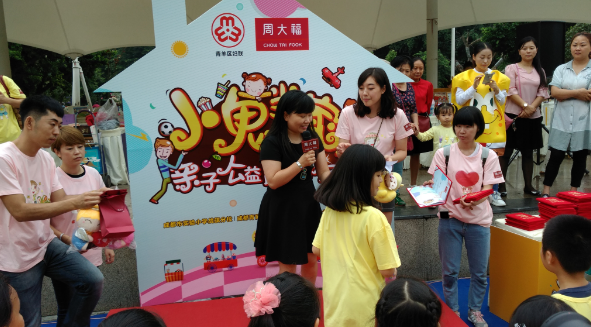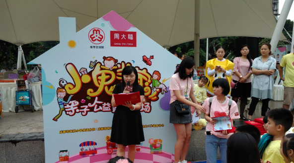 中国巴蜀在线四川成都9月17日讯 17日下午,周大福会员[体验+]系列活动之“小鬼当家”亲子公益跳蚤市场成都站活动正式启动。据了解,活动在成都市青羊区妇女联合会、成都市实验小学战旗分校、成都青苗公益、成都市青羊区合众社会工作服务中心的支持下于成都同德书香社区展开,活动交易所得的所有善款都将捐赠给安安雷特罕见病研究所。