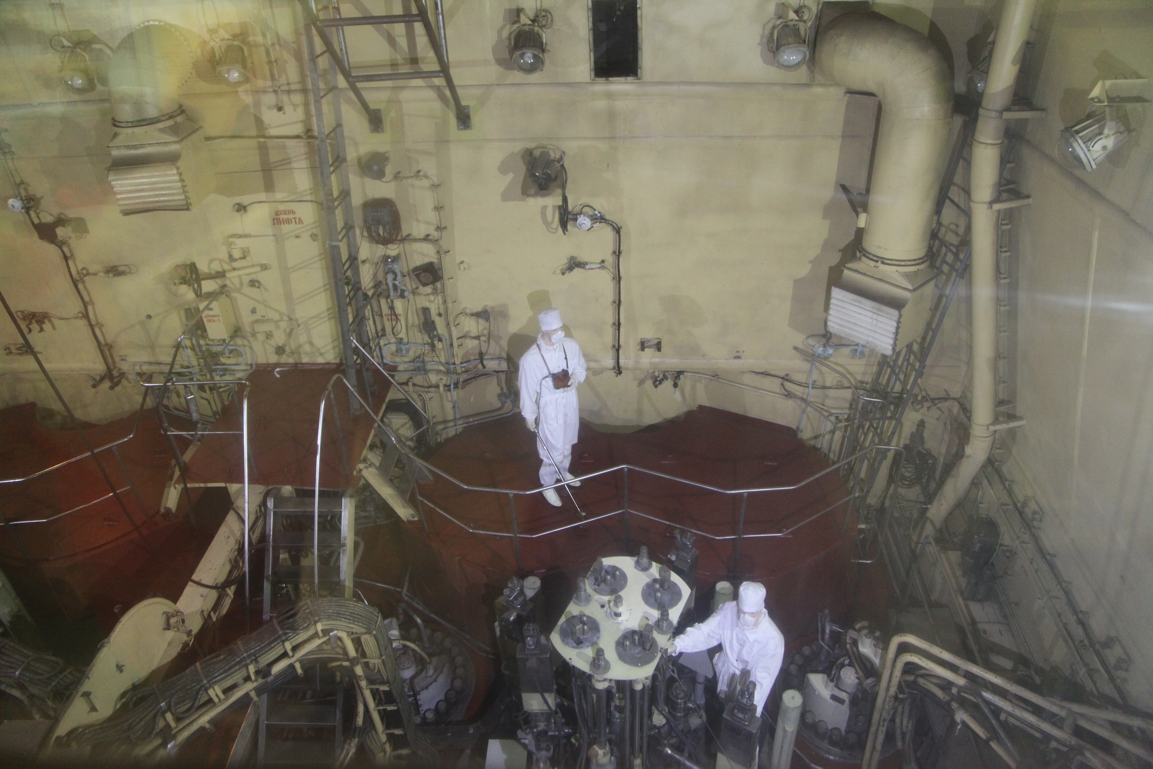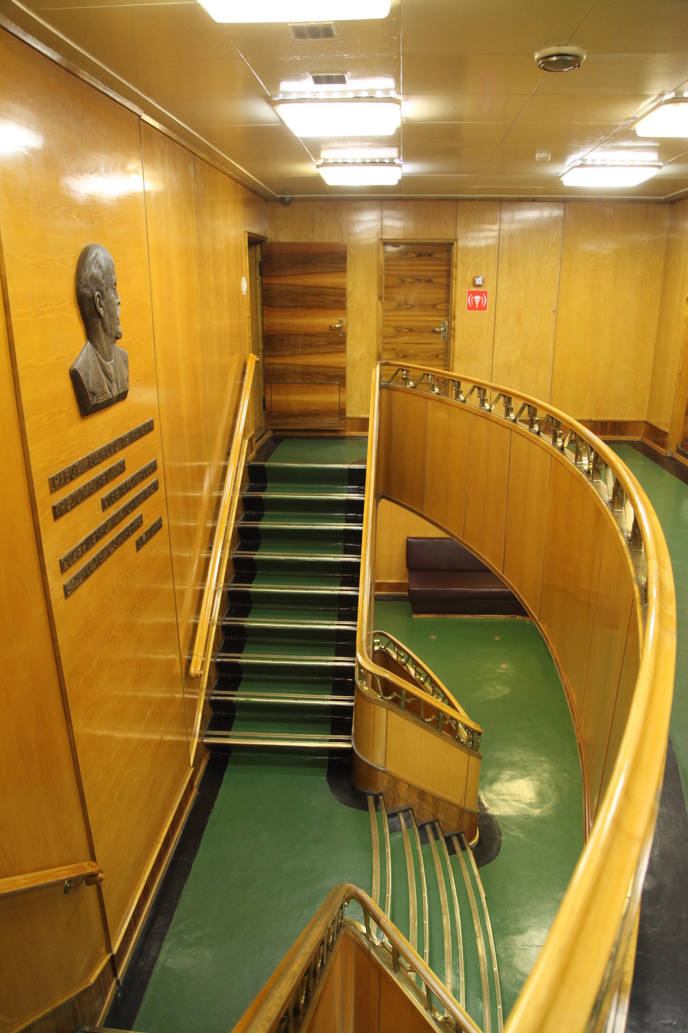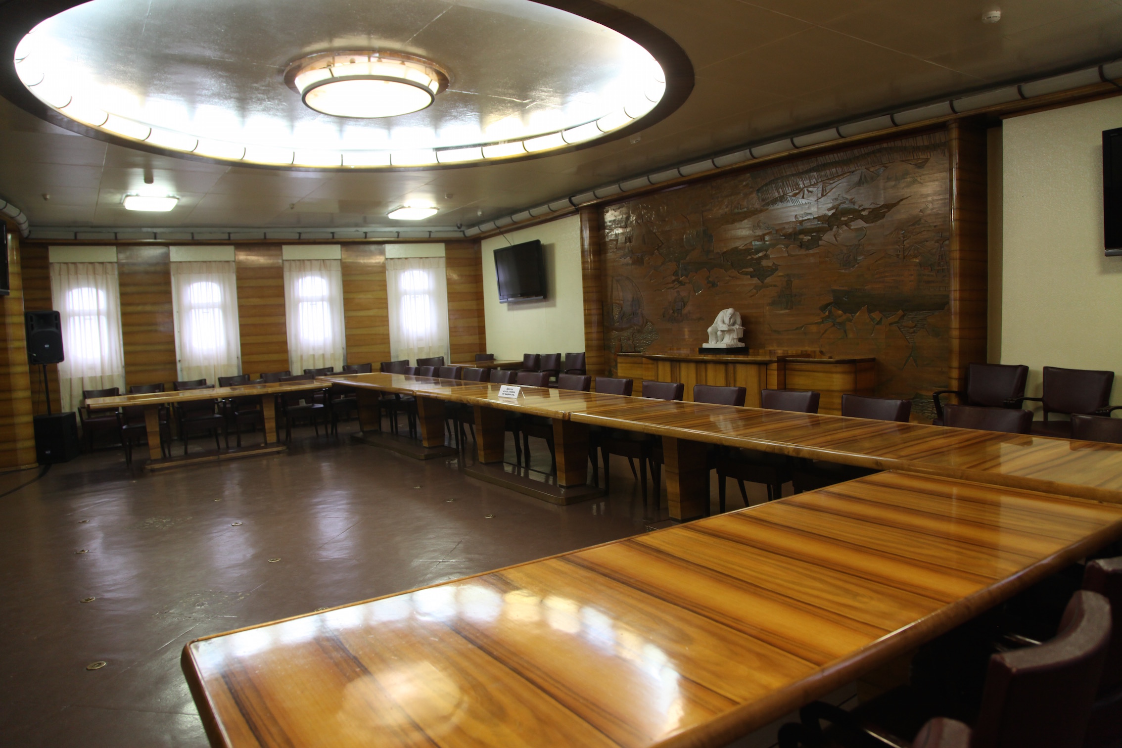 透过玻璃窗能看到第一个可监控的核反应堆就在船上。还能看到船员当年的餐厅、会议室还有影音室,当年老毛子就开始用那年代的“黑科技”——投影仪了。