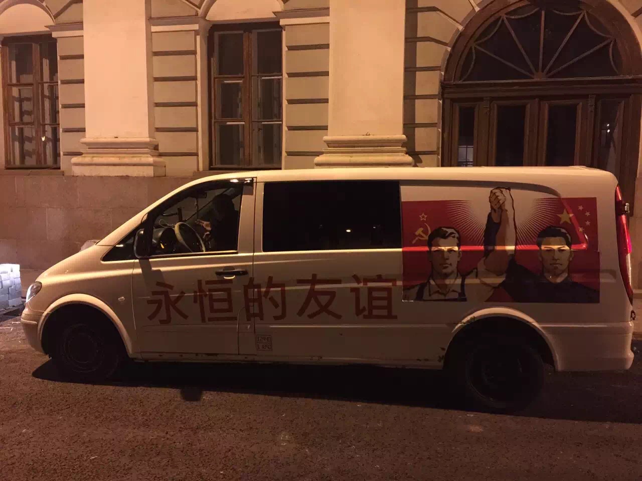 俄罗斯人有大国情节和自己的骄傲,因此大街上路牌上基本看不到英文,全是俄文,英语普及 率也比较低,在俄罗斯购物和问路不是靠手语就是要外加简单的英文,不过这两年面对腰包发胀的中国飞客们,俄罗斯人也是甘为五斗米折腰。在圣彼得堡街上费胖偶遇了这样的场景,普京大大和习大大的努力下,中俄两国友谊得到了升华。