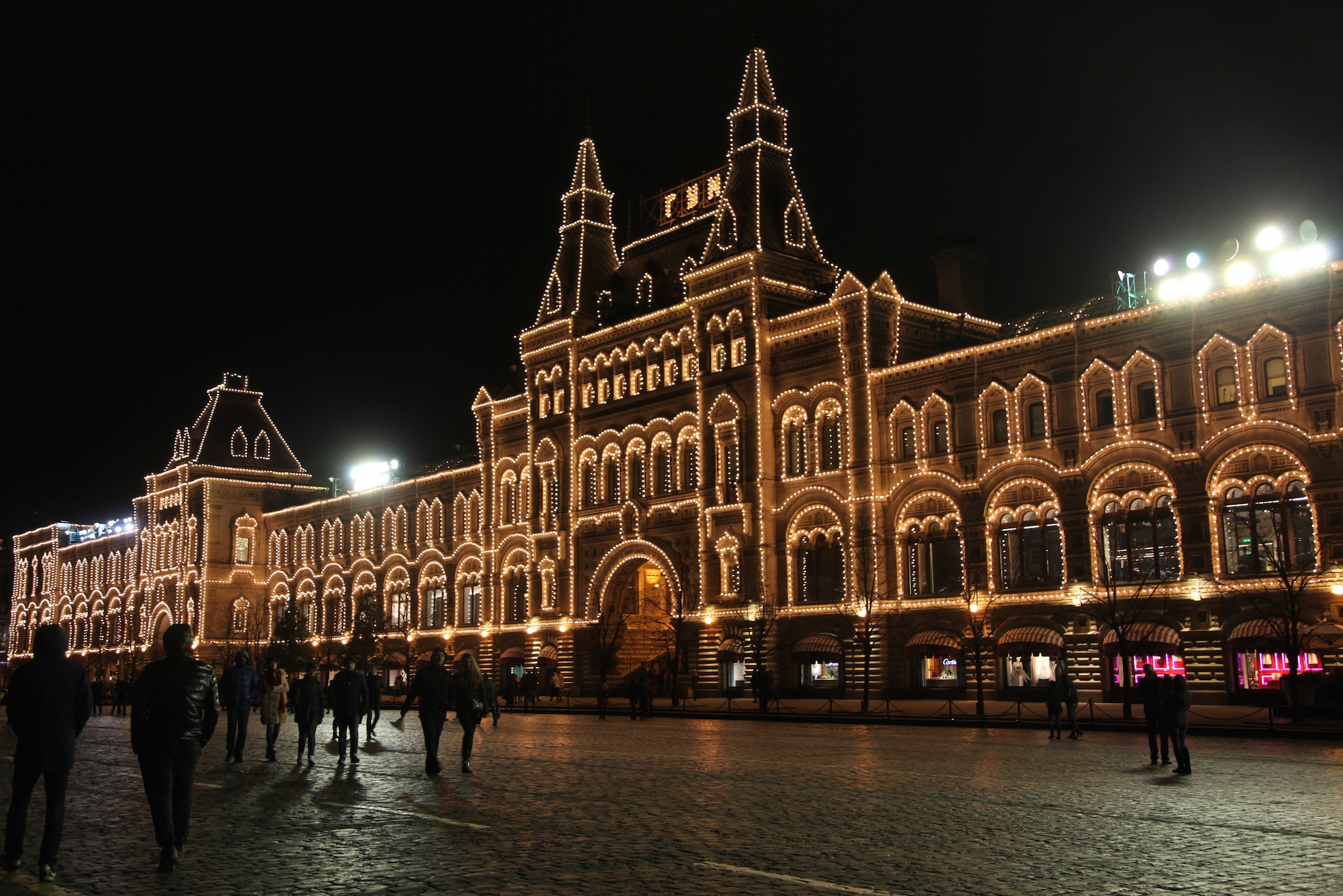 古姆百货的轮廓在黑夜的映衬下简直就像一个Q版的童话王国,暖气开得足不过商品并不便宜,化妆品和HK比并没有太大优势,里面的冰淇淋比哈根达斯还好吃,关键不贵才5元软妹币一个单筒,推荐草莓味。