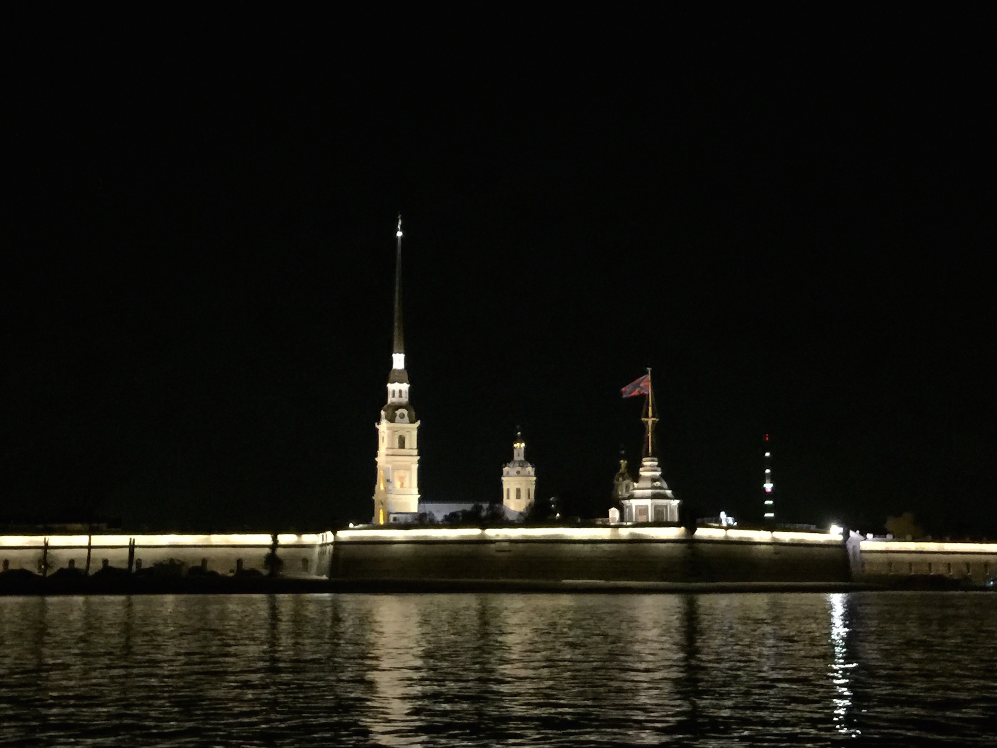 晚上在涅瓦河上的小渡轮上,喝着伏特加,吹着风夜游涅瓦河也是观光圣彼得堡超赞的方式,两边的巴洛克风格建筑随便一栋都是上百年的历史,彼得要塞的尖尖塔和阿芙洛巡洋舰是最显眼的地标。