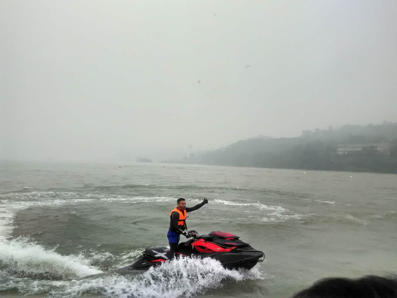 教练员们表演结束后,重庆第二批游艇学员代表刘强先生,骑上他的爱艇进行了即兴表演,摩托艇的速度快如闪电,飞溅的浪花,腾空的蛟龙,充分展示着男人的情怀。刚拿到中华人民共和国游艇驾驶证的他在接受记者采访时说:“水上运动不仅彰显着男人的阳刚,更能体会水浪的柔美,太刺激了!”