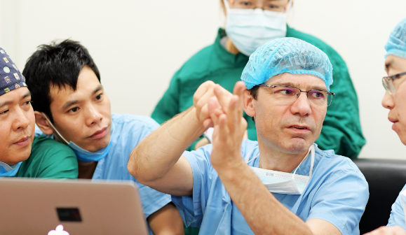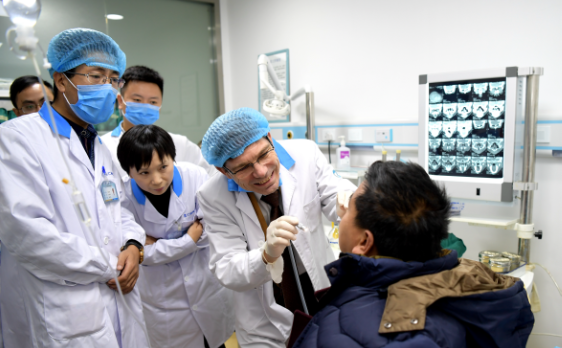 当天上午,Maurer教授一行首先参观了成都仁品耳鼻喉专科医院的门诊、住院部、耳科、鼻科、咽喉头颈外科、脱敏中心、听力中心、鼾症中心等科室,所到之处都仔细询问和了解,与医生、患者进行深入互动,对成都仁品耳鼻喉专科医院的整体实力和技术水平频频竖起大拇指。Maurer教授向仁品医生团队详细讲解了目前德国鼾症治疗新技术——口腔矫治器的操作方法、注意事项及适应人群,与仁品专家一起会诊鼾症患者,详细分析睡眠监测仪的各项数据,并手把手演示鼾症手术的操作流程,其严谨细致、一丝不苟的专业精神赢得了一片掌声。