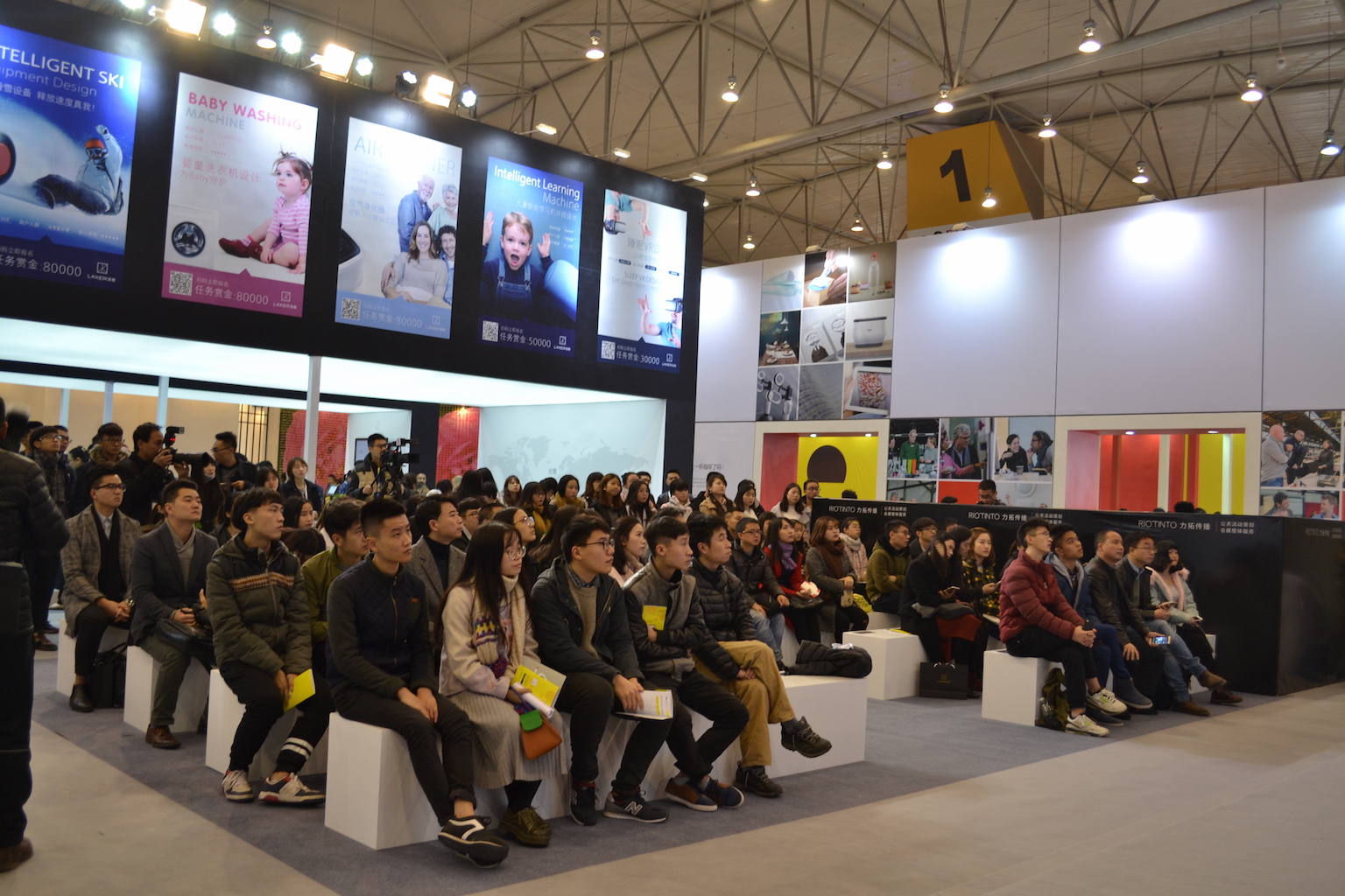 展会首日,洛可可2016红点奖产品萝卜医生智能听诊器、唱吧话筒,洛客邦德杯,五粮液新青年白酒,门里智能化妆镜,帕尔特HC冷暖器纷纷在发布盛典登台亮相。作为制造商,他们希望自己可以更深度地了解用户的需求,从而设计出有参与感,用户真正想要的产品。在自己未来的产品中,用户期望的生活场景、社交圈子、生活的内容等,都能在“落地”的产品中有所呈现。这五款爆款产品在随即在洛客活动现场发布了属于自己的设计任务,悬赏万元希望能够招募优秀的设计师,参与超级智能产品的设计任务。借此,活动迎来了首日的第二次高潮。
