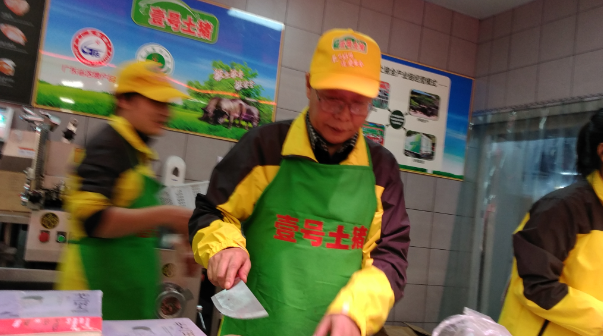穿上壹号土猪的黄色工服,戴上黄帽子,系上绿围裙,“北大屠夫”陆步轩在成都西单市场操刀卖猪肉,引来众人围观。实际上,陆步轩在今年结束了12年的体制工作,再度操刀卖猪肉。