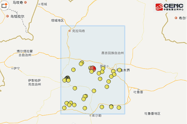 中国巴蜀在线四川成都12月8日讯 据中国地震台正式测定,12月08日13时15分在新疆昌吉州呼图壁县(北纬43.83度,东经86.35度)发生6.2级地震,震源深度6千米。
