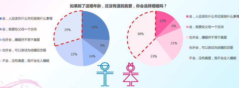 对于大部分单身而言,至今未能脱单的原因大多是未能寻找到自己的理想伴侣。根据世纪佳缘调研报告显示,成都男性最爱的理想女友类型为知性大方、知书达理和活泼开朗;成都女性最爱的理想男友为顾家体贴型,其次为阳光暖男和机智幽默。而在面对女友狂热追星这一态度上,52%的四川男性和53%成都男性表示介意,在全国各省份和重点城市的对比中均居首位。在恋爱开始的方式上,“一见钟情”往往被诸多人向往,根据调研报告显示,74%的成都男性相信一件钟情,重庆女性则为57%,远低于男性。而对于能产生“一见钟情”的原因,成都单身男女都最看重“靠近她时突然产生的感觉”。然而,“真爱”的寻觅充满了偶然性,而不断增长的年龄往往会不合时宜地成为了阻挡单身们寻觅“真爱”的屏障。面对“如果到了结婚年纪,还没有遇到真爱时,你会选择婚姻吗?”这一调研时,仅有30%的成都男性坚定选择会等到真爱来临才会走入婚姻;而成都女性态度较之则更为笃定,43%的重庆女性选择会等到真爱到来才走入婚姻。