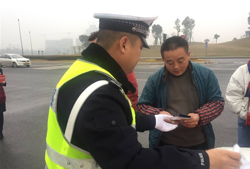 中国巴蜀在线四川成都2月13日讯 从今年1月23日起,成都科华中路、科华南路,天府大道南一、二段开始试点设置多乘员车辆专用车道。今(13)日,成都交警正式对违反规定使用多乘员专用车道(HOV车道)的车辆进行处罚。从兴隆湖驾驶面包车前来接工人的雷师傅领取了成都HOV车道的首张罚单。