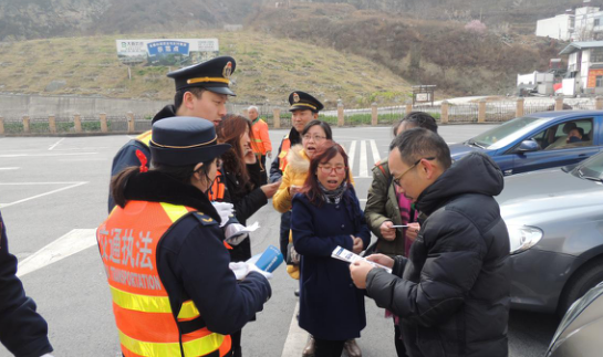 中国巴蜀在线四川成都3月15日讯 15日是“3.15消费者权益日”,川交高执四支队四、七大队在绵虒服务区联合开展了“3.15消费者权益日”活动,以保障司乘人员合法权益。
