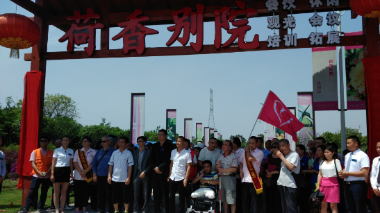 当天,组织方还特邀四川省老领导莅临新都区荷香别院生态观光产业园,参加四川陶泽传统文化基地联盟揭牌仪式。基地位置在成都市新都区货运大道与青白江交汇处督桥河村的荷香别院生态农业观光产业园创建于2012年9月,流转土地200余亩。产业园负责人介绍,根据国家大力提倡生态环保的循环可持续农业发展模式,这里以乡村为依托,市场为导向,绿色为主体,整合乡村旅游资源优势,丰富乡村旅游内涵,创造观光农业与休闲农业相结合,打造新都“可览、可观、可游、可居”的环境景观,完成集“自然+休闲+运动+美食+康乐”于一体的景观综合体。 他们希望把这里建成残疾人的家,同时也希望通过自身努力拉动农业消费水平,带动农业第三产业发展。 目前,基地开展传统文化节目包括古文、古诗、乐曲、民歌、书画、灯谜、手影皮影表演,还可供拓展、商演、会议和亲子游等互动项目。