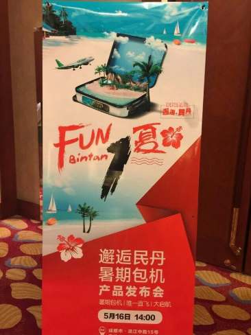 中国巴蜀在线四川成都5月17日讯 在包机市场火热的成都市场,首次民丹启航,给所有热衷于海岛度假的游人增添了又一最佳目的地。在5月16日的民丹岛暑期包机产品新闻发布会上,相关方负责人称,成都暑期最近旅游力作——“邂逅民丹”首次直飞印尼民丹岛,航程4.5个小时。