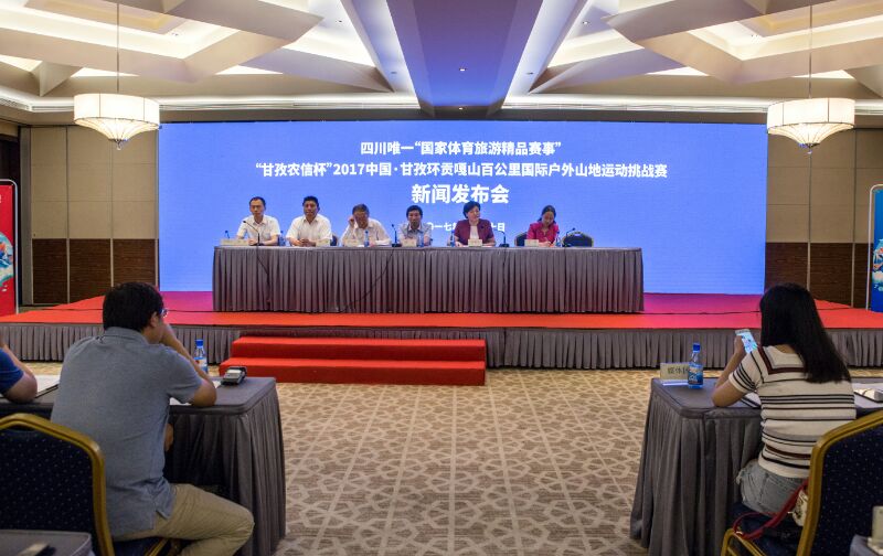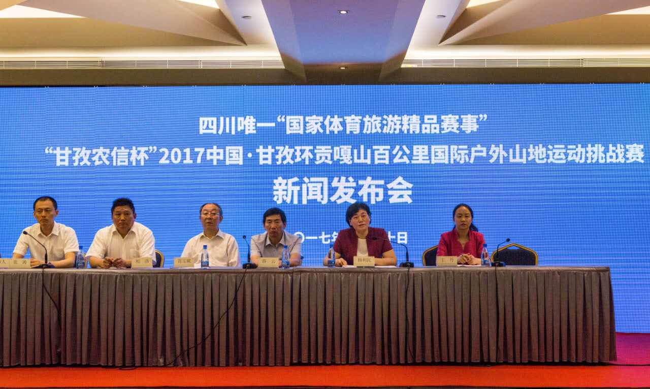 发布会还重点介绍了四川省和甘孜州的地形地貌特征和山地户外运动资源优势。据了解,“中国·甘孜环贡嘎山国际山地户外运动挑战赛”系主办方用三年的时间打造环贡嘎山“海拔最高、线路最复杂、难度最大、风景最美的国际A级山地户外赛事”, 也是目前国内赛事中唯一能够观赏海拔6000米以上雪山的精品赛事。2015年和2016年已成功连续举办两次,在国际、国内引起了巨大的反响,得到了广大户外运动爱好者的认同,取得了良好的社会效益。2017年,该项赛事被国家体育总局、国家旅游局认定为全国首批、四川省唯一的“国家体育旅游精品赛事”。四川省体育部门和甘孜州地方欲将借助该赛事,将甘孜州打造成为与其世界级自然禀赋相适应的东方户外天堂、国家体育旅游产业示范区和国际山地旅游目的地。