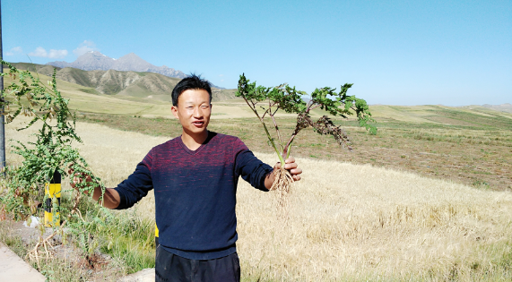 (祁连山下中草药种植区,农户对比不同种植体系的当归)