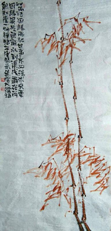 近现代吴昌硕、齐白石将金石之气溶入墨竹之中,羊毫长锋,缓慢行笔、如刀镌石,力足扛鼎,写出了独具特点的墨竹。