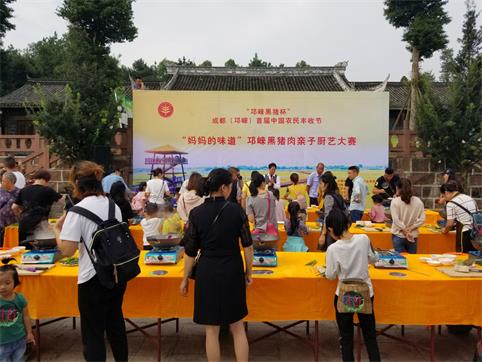中国巴蜀在线成都邛崃9月22日讯 诱人美食,黑猪肉香飘邛崃。邛崃临济镇嘉林生态农场欢声笑语,热闹非凡。9月22日,“妈妈的味道”邛崃黑猪肉亲子厨艺大赛在各位“厨神”PK中拉开了帷幕,观赛的数百名游客乐在其中。作为此次首届中国邛崃农民丰收节的子活动,此次大赛吸引了21个亲子家庭的热情参与,现场“厨神”们各显神通,点燃了丰收节欢乐颂。