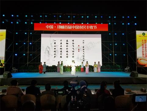 中国巴蜀在线成都邛崃9月23日讯 大地丰收别样喜,月近中秋分外明。9月23日晚,在中国邛崃首届中国农民丰收节主会场,邛崃丰收主题原创诗歌大型朗诵晚会在邛崃市河滨广场举行。四川省内诗人们的匠心之作与众多优秀朗诵家的深情演绎完美结合,一幅幅天府田园的幸福美丽乡村画卷徐徐展开,让丰收节办出了浓浓的文艺范儿。