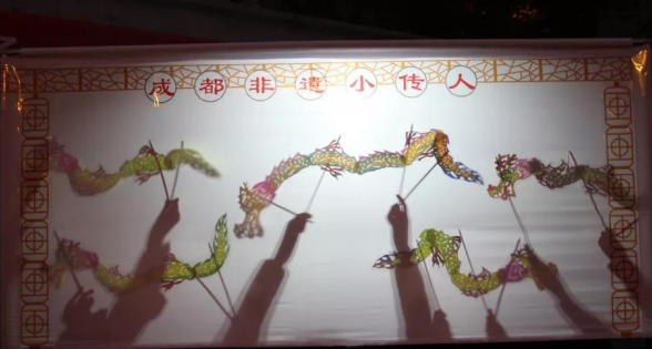 夜幕降临,非遗小传人皮影戏班的孩子们用自己制作的皮影形象,为现场游客带来了《猪八戒吃西瓜》、《哪吒闹海》、《龙舞》等皮影戏经典剧目,台下的大观众和小观众聚精会神,赞不绝口。