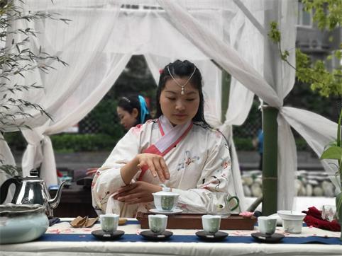 中国巴蜀在线成都4月2日讯 四月芳菲尽,深巷飘茶香。今(2)日,2019四川花卉(果类)生态旅游节分会场暨第九届成都邛崃采茶节盛大启幕,同时,“老茶馆.新味道”邛崃黑茶也在成都宽窄巷子里也飘出了阵阵古琴声和邛茶香。