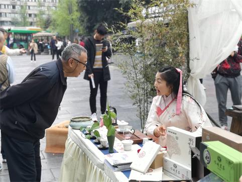 尝到邛崃黑茶第一杯春茶的胡先生说:“在成都的宽窄巷子里能一边听古琴演奏,一边欣赏茶艺表演,还能喝到清香正宗的邛崃黑茶,巴适!”。随后,记者采访了现场表演的茶艺师,他说:“邛崃黑茶有着上千年的历史,茶质属上品。这次来宽窄巷子为大家展示茶艺,也是为了让更多人品尝邛崃黑茶第一杯春茶的清香、感受中华传统茶艺之美。”
