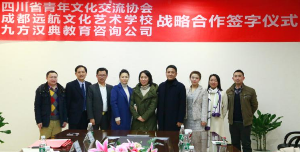 四川省青年文化交流协会与成都远航艺术培训学校、四川九方汉典教育咨询有限公司根据自身优势,本着平等互利、优势互补的原则,决定建立战略合作关系,充分发挥三方优势,三方视对方为合作伙伴,在达成一致的情况下实现资源共享。
