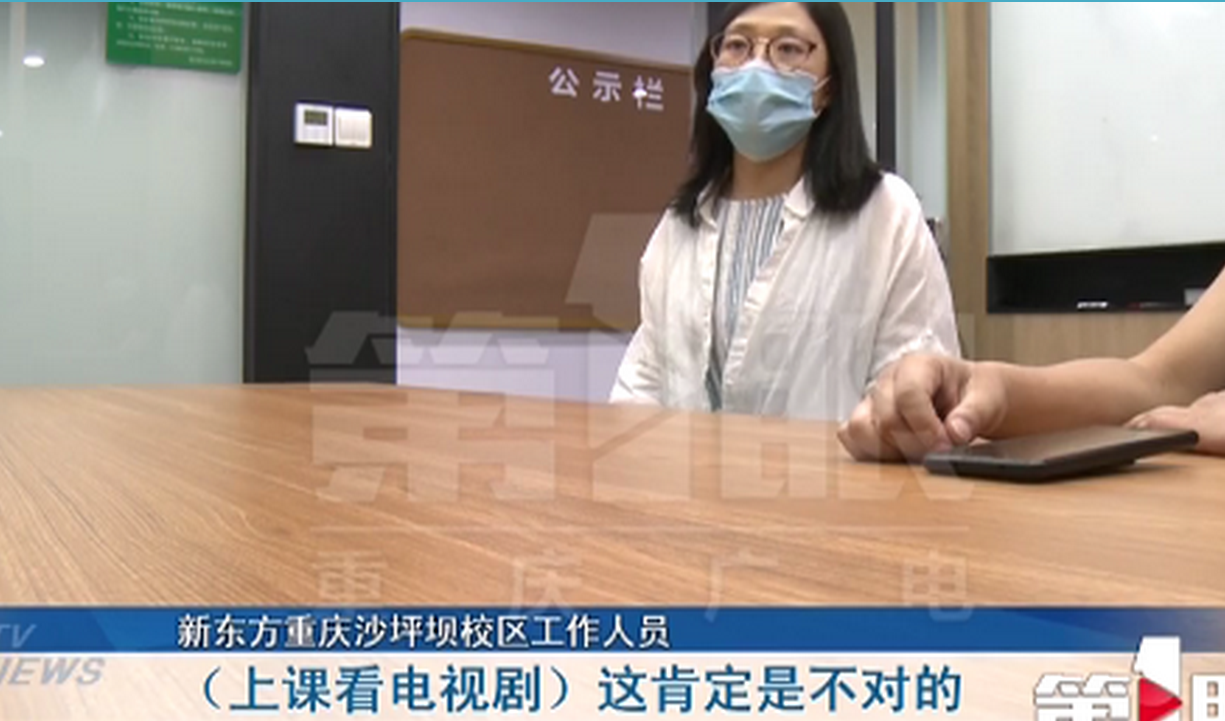 得知情况后,刘女士立即找到当时的辅导老师,对方表示,的确在上课期间安排孩子看了电视剧,为此,数学辅导老师还向巨女士进行了道歉。本想通过"一对一"的补习,提高孩子的学习成绩,没想到补习课变成了看电视。刘女士说,事情发生后,新东方沙坪坝校区决定免除部分课时费,但家长表示不能接受。
