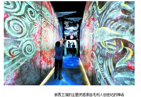记者在现场看到,新西兰人以独特的毛利欢迎仪式来“唤醒”新西兰馆。欢迎仪式分为唱诵祝福、演讲、碰鼻礼等部分。