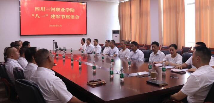 为庆祝“八一”建军节,7月30日上午,四川三河职业学院在学校二会议室举行了座谈会。学校退役军人代表参加了座谈会,学校执行董事王文潇、党委副书记王华、人事处处长王琳等领导出席会议。