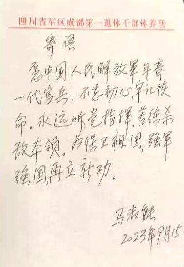 特别高兴的是,原成都军区政委张志坚上将给手写寄语题了词。