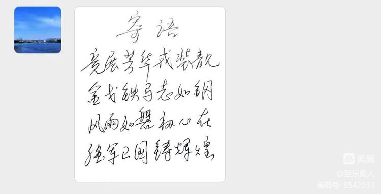 马淑能的手写寄语 。