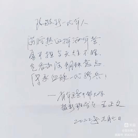 王正文的手写寄语。