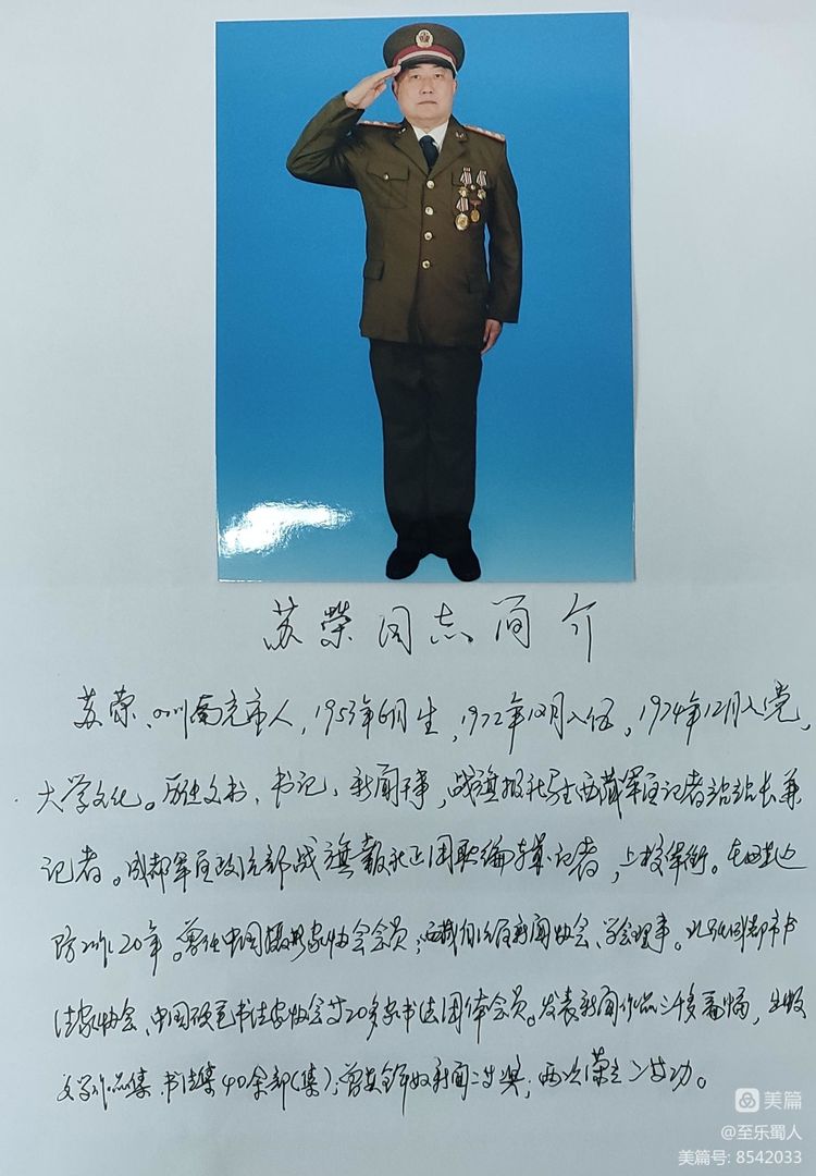 摄影班学员王正文的照片。简历:王正文,男,1956年3月出生,1975年6月入党,1974年12月应征入伍,历任副班长、文书、营部书记、参谋,1998年6月任四川彭山县人武部部长,上校军衔。先后荣立三等功2次,各级嘉奖6次。现为四川省军区老干部大学摄影班学员,四川省摄影家协会会员。中共成都市青羊区宁夏街社区军转干部党支部书记。