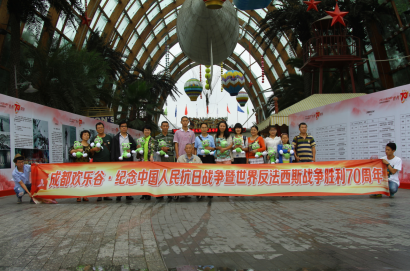 中国巴蜀在线讯 在中国人民抗日战争暨世界反法西斯战争胜利70周年之际,结合国家旅游局“铭记历史·圆梦中华”全国红色旅游万里行主题活动。9月3日,成都欢乐谷邀请了近20位反法抗战老兵及家属于欢乐谷抓壮丁舞台分享抗战经历,讲述抗战故事,为我省“红色旅游万里行”活动增光添彩。
