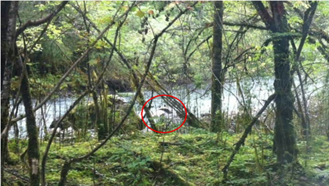 9月13日中午12时许,十余名游客搭乘景区观光车在王朗自然景区内游览。当车行至竹根岔沟万松林景点附近时,游客和驾驶员无意中发现丛林间有一只野生大熊猫,游客激动万分,纷纷拿出手机拍照。发现游客后,大熊猫慢吞吞地涉水进入对岸的丛林消失了,驾驶员和游客的手机记录下了这一组珍贵的镜头: