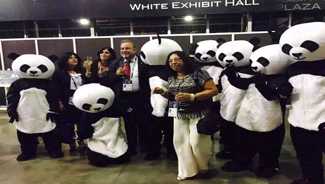 除真人版大熊猫外,成都的形象宣传片、大会餐桌上的大熊猫公仔、英文版的四川成都的各种旅游指南、会场里四川旅游的展板……在本届联合国世界旅游组织全体大会上随处都能看到四川成都的身影。