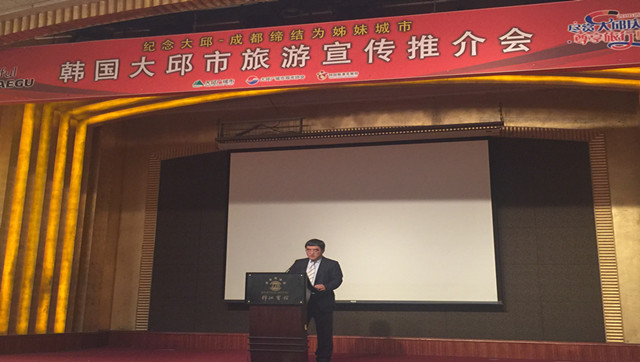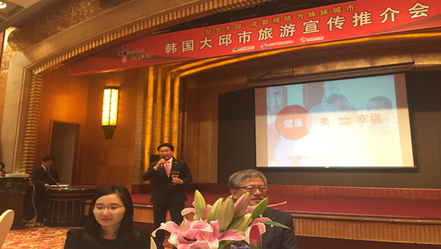 中国巴蜀在线2015年11月11日成都讯(杨小萍)昨日下午来自韩国的大邱市政府代表团在成都锦江宾馆举办了韩国“2016大邱庆尚北道访问之年”观光宣传说明会,并与成都市正式签订结为姐妹城市的。