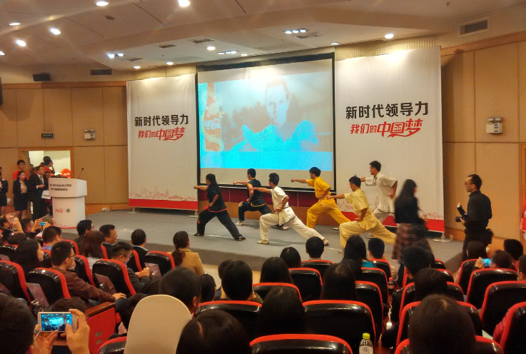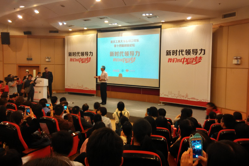 中国巴蜀在线11月18日18点30分 华灯初上,位于重庆工商大学博志楼的学术报告厅热闹非凡,第十四届重庆工商大学·可口可乐“重庆工商大学创业论坛”在这里如期举行,论坛开幕前,大学生们对可口可乐的瓶装设计进行了颁奖,随后大学生们表演了精彩的中国功夫,霍可龙先生更是兴致勃勃的上台“拜师学艺”,全场师生更是报以雷鸣般的掌声。