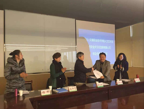 中国巴蜀在线四川成都12月11日讯 四川省非遗传承“皮拖”再谋发展!12月10日,四川省交通职业技术学院与芦山金园皮艺文化发展有限公司在交职院综合楼举行了非遗进校园校企合作签约仪式。据了解,出席此次签约仪式的有芦山金园皮艺文化发展有限公司董事长、四川省民间艺术大师孙泽慧和四川省交通职业技术学院党委副书记、院长魏庆曜,教务处主任杨桦,人文糸主任李敏及部分教师。
