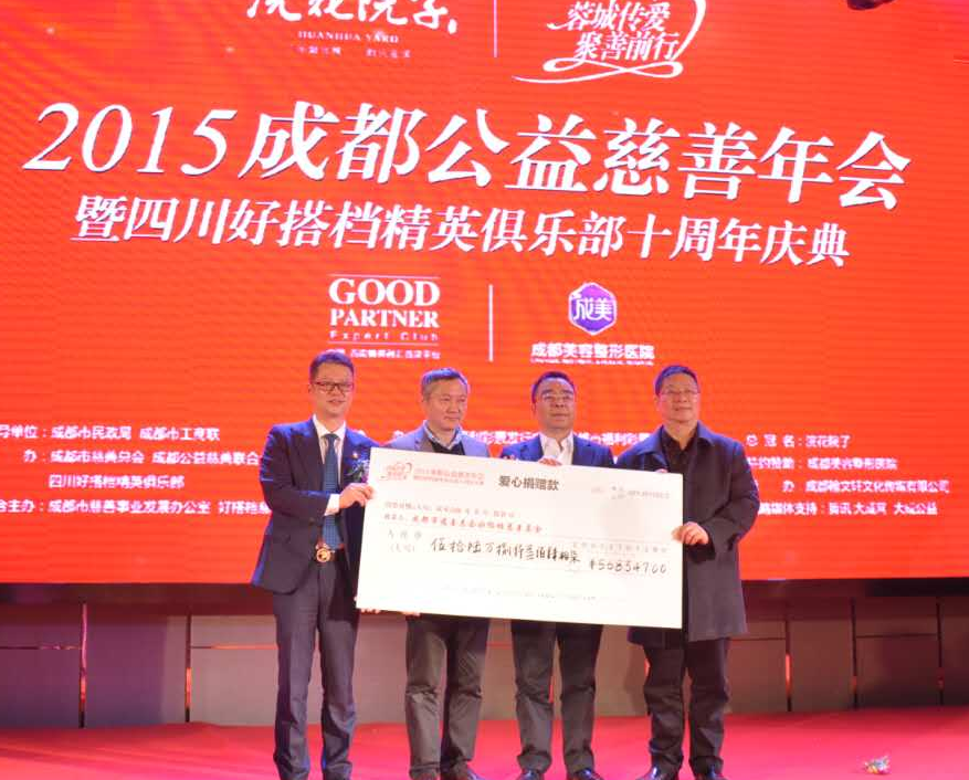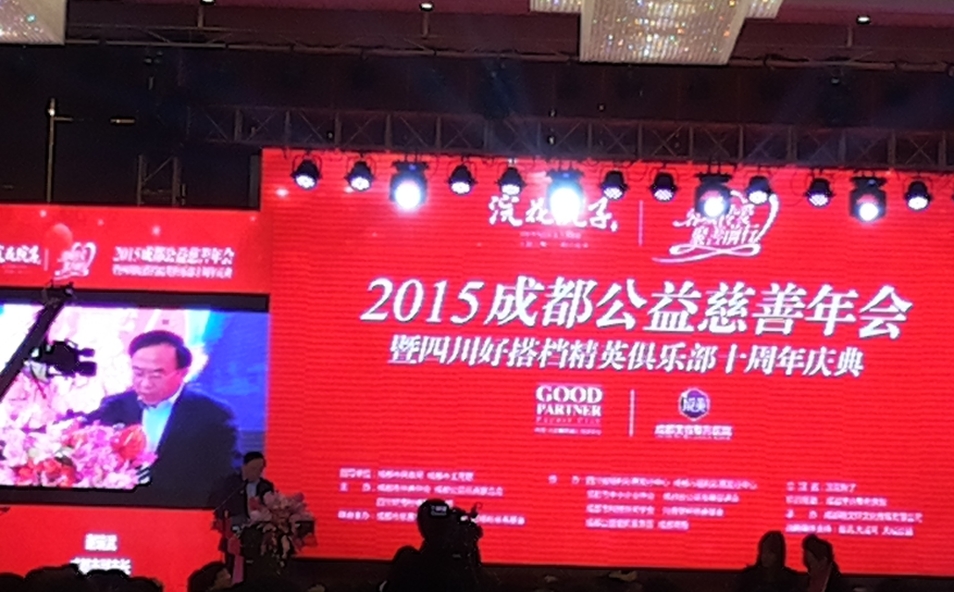 中国巴蜀在线四川成都1月17日讯 由成都市慈善总会、成都公益慈善联合会、四川好搭档精英俱乐部主办,成都市慈善事业发展办公室、好搭档慈善基金联合主办,成都龙旗号房地产开发有限公司“浣花院子”总冠名,成都美容整形医院特约赞助的 “浣花院子‘蓉城传爱,聚善前行’2015成都公益慈善年会暨四川好搭档精英俱乐部十周年庆典”于2016年1月17日在成都市迎宾大道尊悦豪生大酒店隆重举行。成都市副市长谢瑞武,经济与信息化委员会鲜樱、李忠仆,成都市民政局詹庆等领导以及川内各行业企业家、商界精英、知名艺术家、媒体等600余人参加。