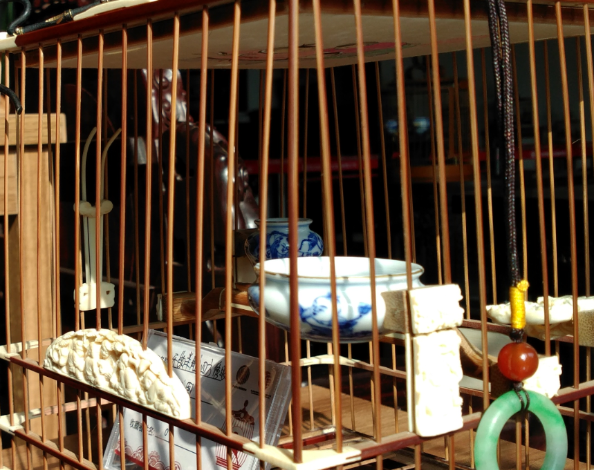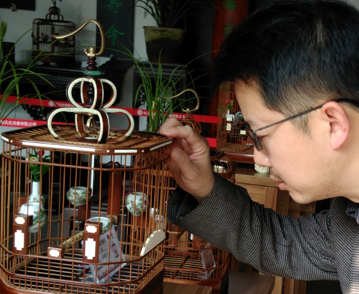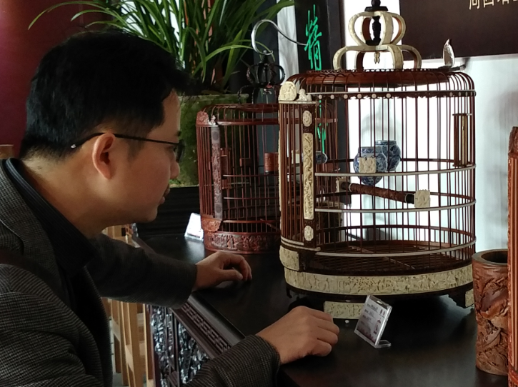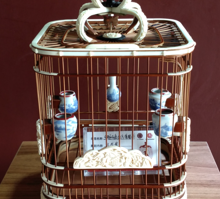 在现场,以竹、木、牙、角为载体的精品鸟笼作品设计优美,有的作品上面雕刻有中国古典文学名著、民间传说、山水花鸟以及走兽虫草。其中一张鸟笼更是绘有“百子图”,牙嵌半雕四方,引来很多游客驻足欣赏。四川金桢楠文化传播有限公司负责人说,都江堰市却从未举办过此类活动,此次比赛举办即可吸引都江堰市及周边城市上万爱好者前来比赛和观摩,同时也带动了都江堰市各项旅游经济,活跃了都江堰市清明放水节活动期间的人气,可谓一举两得。