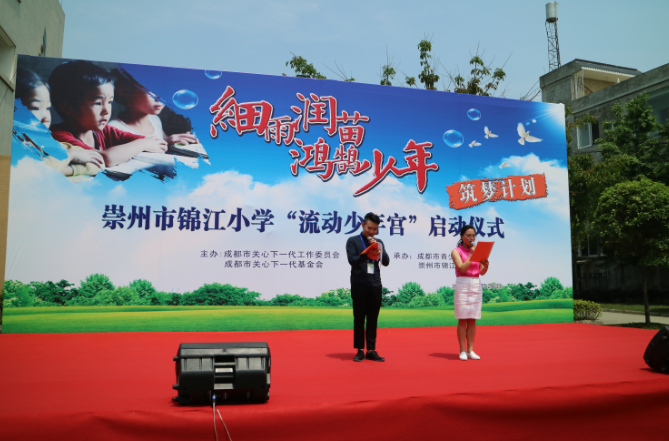 中国巴蜀在线四川成都4月29日讯 “细雨润苗?鸿鹄少年——留守儿童筑梦计划”流动少年宫启动仪式于2016年4月28日在崇州市锦江小学举行。成都市关心下一代工作委员会常务副主任、成都市关心下一代基金会理事长何绍华和成都市青少年宫青少年社会实践与研究中心主任杨加军共同向崇州市锦江小学授予“流动少年宫”铭牌。