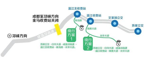 中国巴蜀在线四川成都5月17日讯 17日起,成温邛高速公路将实施近年来最大规模的一次路面加铺工程,预计9月底完工。目前,成都至邛崃方向金马收费站关闭,从成都前往金马的车辆需提前从温江站、温江北站下高速。此外,崇州(微博)收费站延后关闭,将继续保持正常通行。