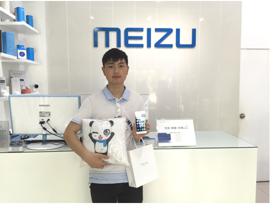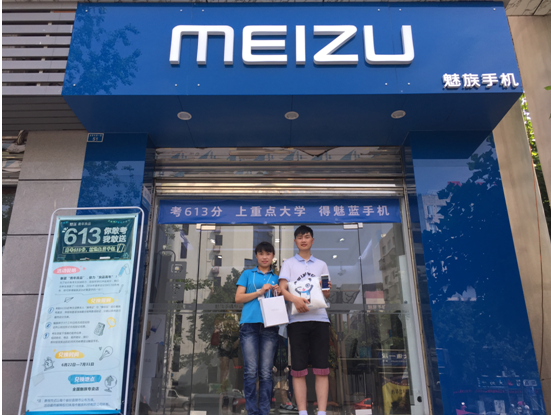 中国巴蜀在线讯 6月23日,魅族“高考613分送手机”活动正式迎来了第一位兑换者。来自四川广安的唐同学是全国第一位到达魅族专卖店兑换手机的考生,由于是“全国首位”,魅族专卖店不仅现场即为唐同学发放了大奖魅蓝metal,还特别赠送了一套魅族专属纪念品。