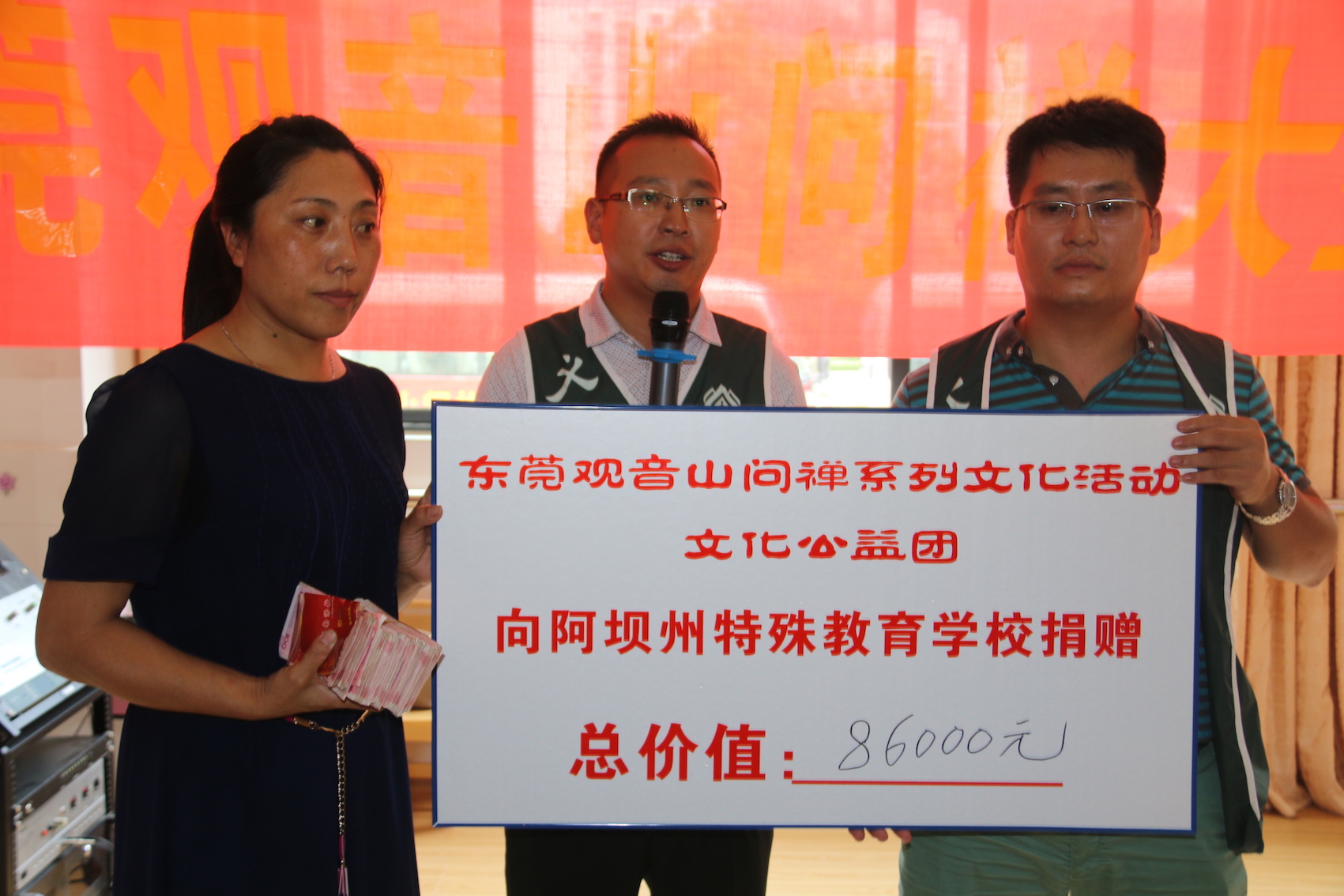 此次公益文化行获得社会的热烈反响。在启动仪式的现场,记者发现1名中年男子特别引人注目,一身简朴的休闲装,手里紧拽着一个公文包。一问之下得知,该男子是全盛汽车集团慈善总监梁正洪,为了能把公司善款捐给汶川的贫困儿童,当天早上6:00起床,早餐也没顾上,从广州直奔东莞观音山,并把2万元现金亲手交到赴四川阿坝公益团相关负责人手中。梁正洪说道:“我是四川人,自己的家在汶川地震的时候也是重灾区,当时深刻就感受到一方有难,八方支援。”