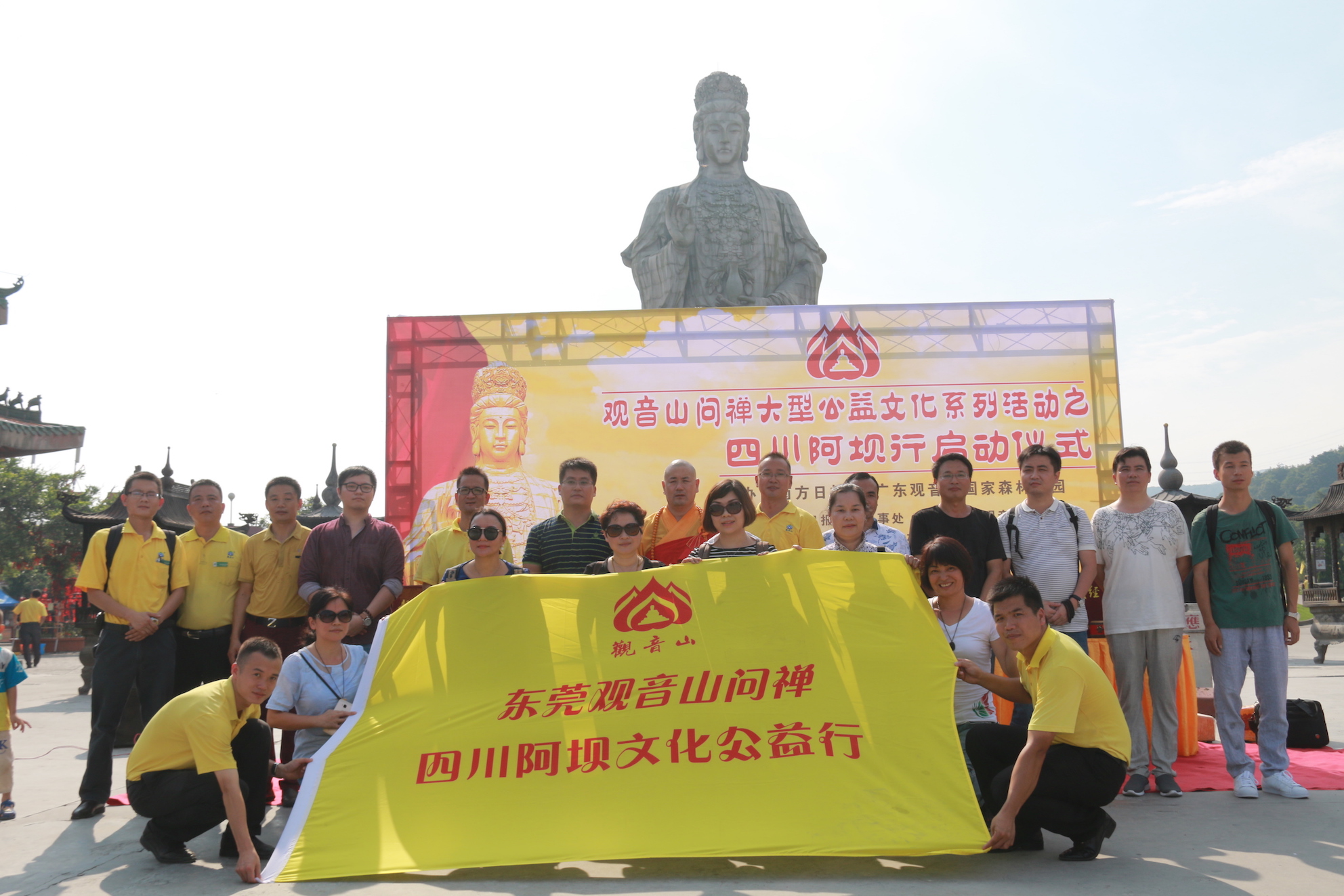 9日上午,晨钟响起不久,“阿坝公益文化行”的参与成员集合在环境清幽、风景如画的东莞樟木头观音山的观音广场,举行了的启动仪式。启动仪式现场,观音寺还为参与四川阿坝行的人员举行了专场祈福活动福。