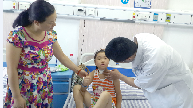 在成都仁品耳鼻喉专科医院,专家们经过会诊,最终确诊小梦涵患的是位置特殊的“甲状舌管囊肿”。“甲状舌管囊肿是胚胎早期甲状腺发育过程中,甲状舌管退化不全在颈部遗留形成的先天性囊肿,感冒可诱发感染。虽然不是罕见病,但这个孩子的病灶位置比一般人靠下很多,这为诊断和手术增加了难度。”小梦涵的主刀医生、成都仁品耳鼻喉专科医院住院部副主任张治军解释。8月19日,小梦涵在成都仁品耳鼻喉专科医院接受了第3次颈部手术,跟纠缠她的颈部“怪病”彻底说声拜拜。