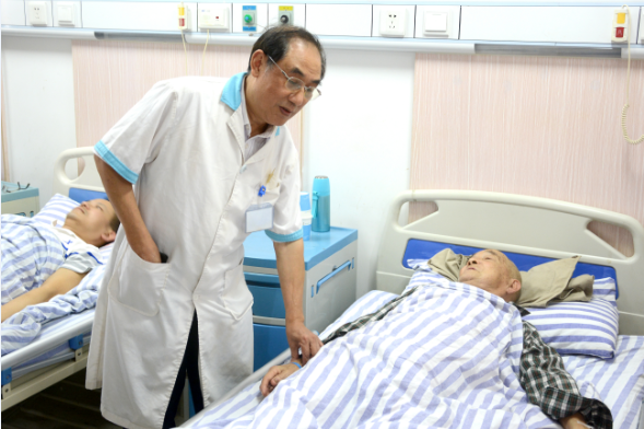 李大爷的主治医生,退休老军医李善校介绍:“鉴于患者年龄较大,身体状况不佳,我们采取了中西结合的方式进行保守治疗,传统的中药内服加上雾化、微波等辅助治疗手段,多管齐下,达到减轻炎症和溃疡、改善患者身体状况的效果。” 听着医生对病情的讲解,一边的李大爷心里乐开了花。