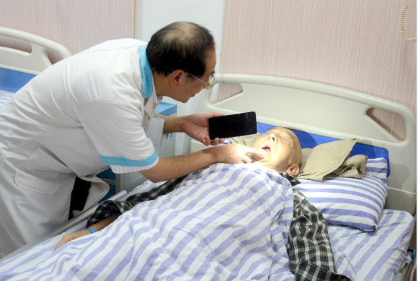 李大爷的女儿介绍说,老人生病后,他们先后去过多家医院,但这些医院纷纷表示不敢收治,建议买点药回家。但,由于病情持续恶化,老人的鼻部、咽喉部等耳鼻喉相关部位严重发炎,让一家人忧心忡忡。直到找到成都仁品耳鼻喉专科医院,他们才感觉找对了看病的地方。“开始并没有住院,只是抱着试一试的心理在门诊了做了两天治疗,炎症就减轻了不少,现在刚做满了一周治疗,感觉轻松了不少,关键是老人能吃下饭了!”